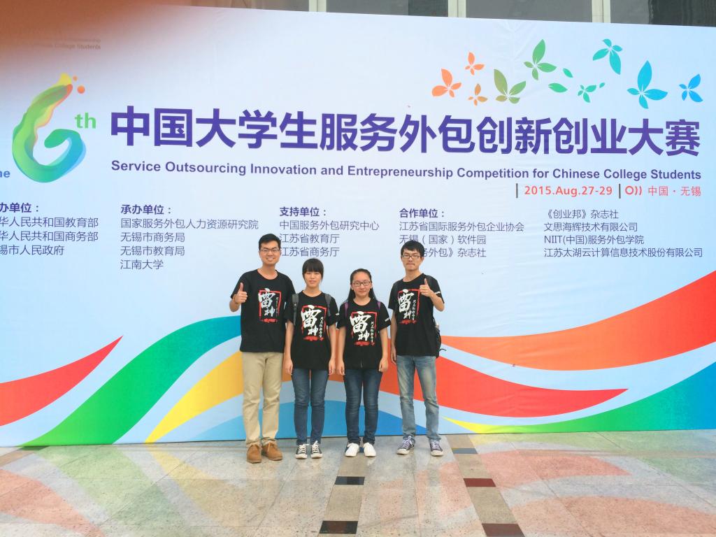 拥抱梦想,创造未来。由国家教育部、商务部和无锡市人民政府联合举办的“第六届中国大学生服务外包创新创业大赛”,经过两天的激烈角逐,于8月29日在江南大学落幕。由我院沈嘉庚同学担任队长的参赛团队在全国总决赛中获得企业命题类一等奖的佳绩。