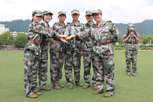 站军姿,炼就了你炎黄子孙不屈脊梁的身体,也磨砺了你龙之传人无穷的毅力。练转身,体现了人类活跃敏捷的思维,更体现了集体主义的伟大。不积滴水,无以成江海。没有我们每个人的努力,就不可能有一个完整的、高质量的方队。训练的每一个动作,都让我深深地体会到了团结的力量,合作的力量,以及团结精神的重要性。走正步,昂首挺胸,绷直了脚板,厚实地向地上“砸”去,只听见整齐而又响亮的回响声铿锵有力。