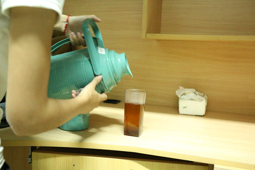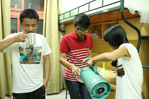 晚上六点,William威廉英国分团委副书记和学生会主席团成员拎着装满姜汤的热水壶为可爱的学弟学妹们送去了热气腾腾的姜汤。