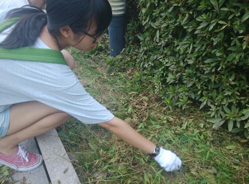 初步感受完校园一角的风采后,同学们没有马上休息,反而在学长学姐们的组织下,加入绿地养护行动,行动快速敏捷且能不伤害到原先种植下去的植物,每个人分工有序,以最诚恳的行动表达着对浙农林大的热爱之情。