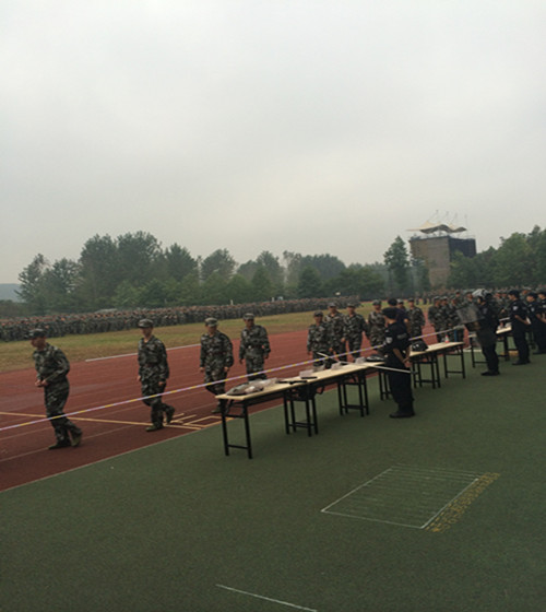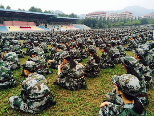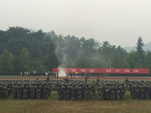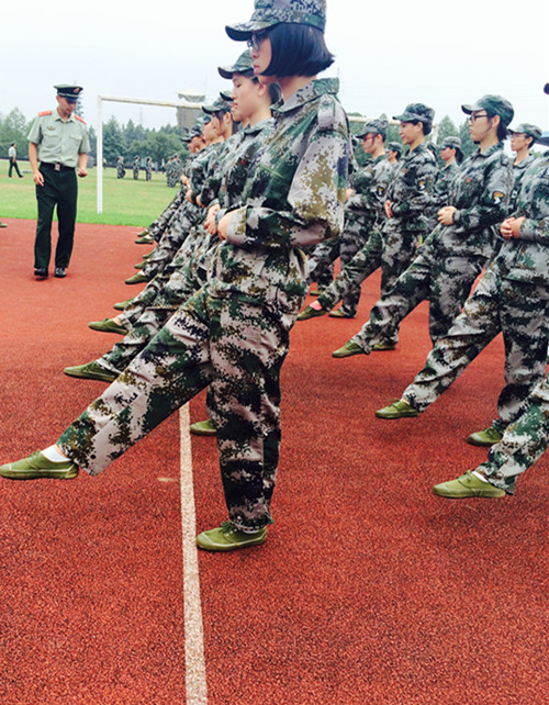 下午,天空飘着细雨,但同学们始终士气高涨,坚定的眼神中逐渐显露出军人的风姿。