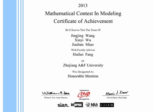 在2013年美国(国际)大学生数学建模竞赛中,我院理工创新实验112班缪家顺同学参加的团队通过认真准备、努力拼搏,最终获得了银奖。这是我院同学首次在国际比赛中获奖。