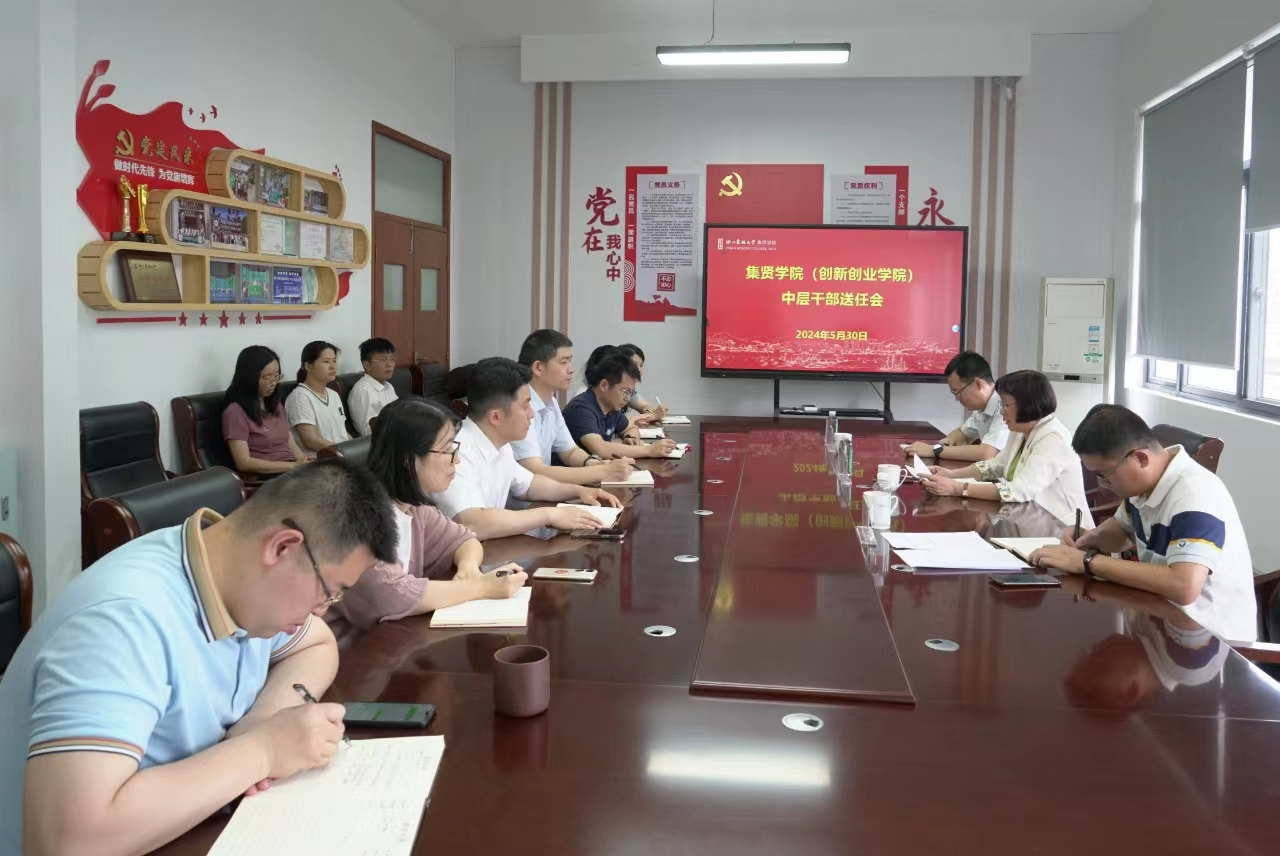 5月30日,学院召开中层干部送任会。校党委委员、副校长沈月琴出席并讲话,组织部副部长方殷杰主持会议,学院领导班子及全体教职工参加会议。