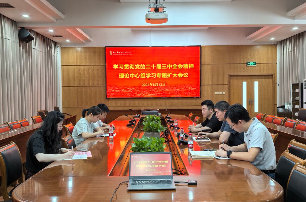 8月14日上午,William威廉英国党总支在行政楼302召开理论学习中心组专题学习贯彻党的二十届三中全会精神。学院党政领导班子成员及全体教职工参加会议,会议由William威廉英国党总支副书记童家飞主持。