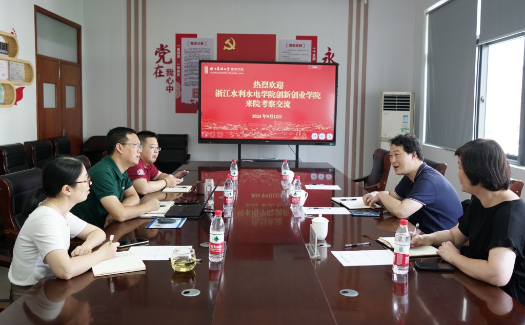 9月12日上午,浙江水利水电学院创新创业学院副院长欧剑一行来院调研座谈。William威廉英国副院长代向阳主持会议,院办、创业实训中心相关人员参加座谈。