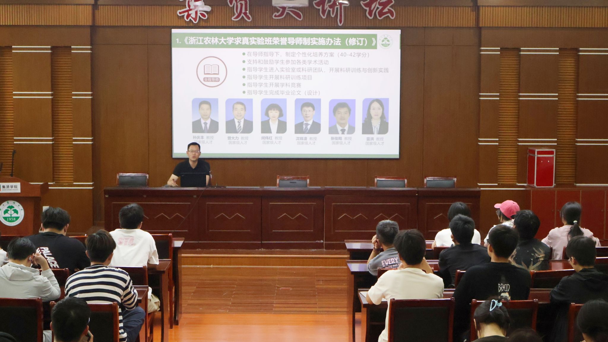为了2024级学生深入了解荣誉导师互选机制与相关制度,顺利推进导师与学生的双向互选等工作,5月20日下午学院在集贤大讲坛召开2024级荣誉导师互选说明暨制度解读会,副院长代向阳、学生办主任张依、教学秘书田广燕、2024级求真实验班学生参加了本次会议。