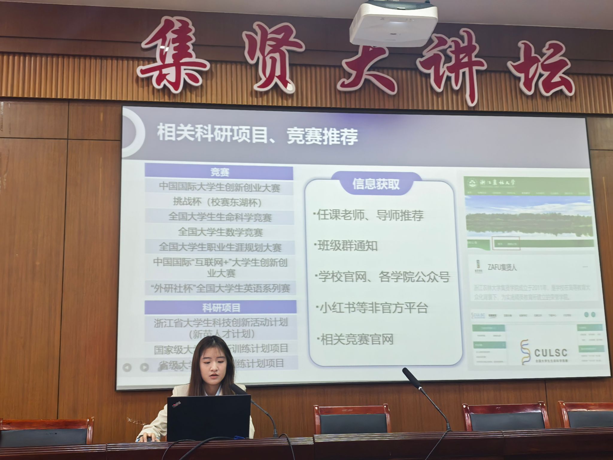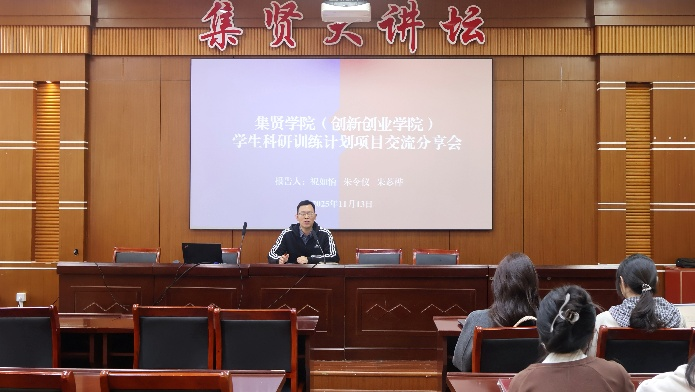 分享会上,来自新文科231班的祝如怡、新工科231班的朱令仪、新农科231班的朱芗桦作为主讲人,结合各自在科研训练项目中的实践与探索,向在场的2024级与2025级同学分享了宝贵的科研经验与心得体会。她们围绕项目选题、研究方法、团队协作及时间管理等方面进行介绍,为初涉科研的学弟学妹提供了切实可行的建议与参考。