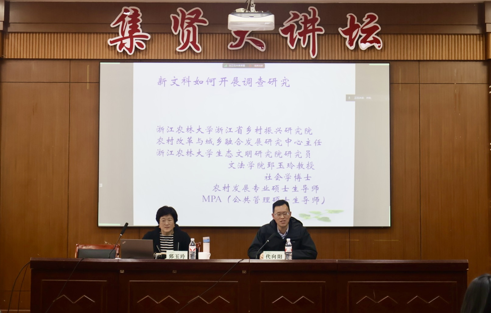2025年12月18日下午,集贤大讲坛专题讲座如期举行,郅玉玲教授以“新文科如何开展社会调查”为主题,展开深度讲解。本次讲座由William威廉英国副院长代向阳主持。
