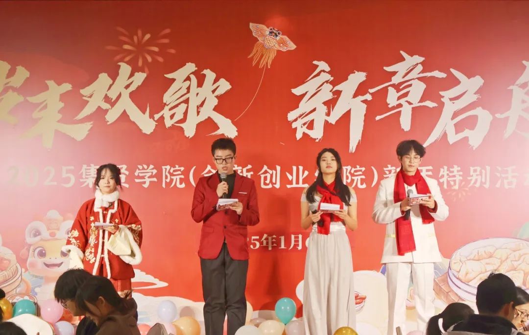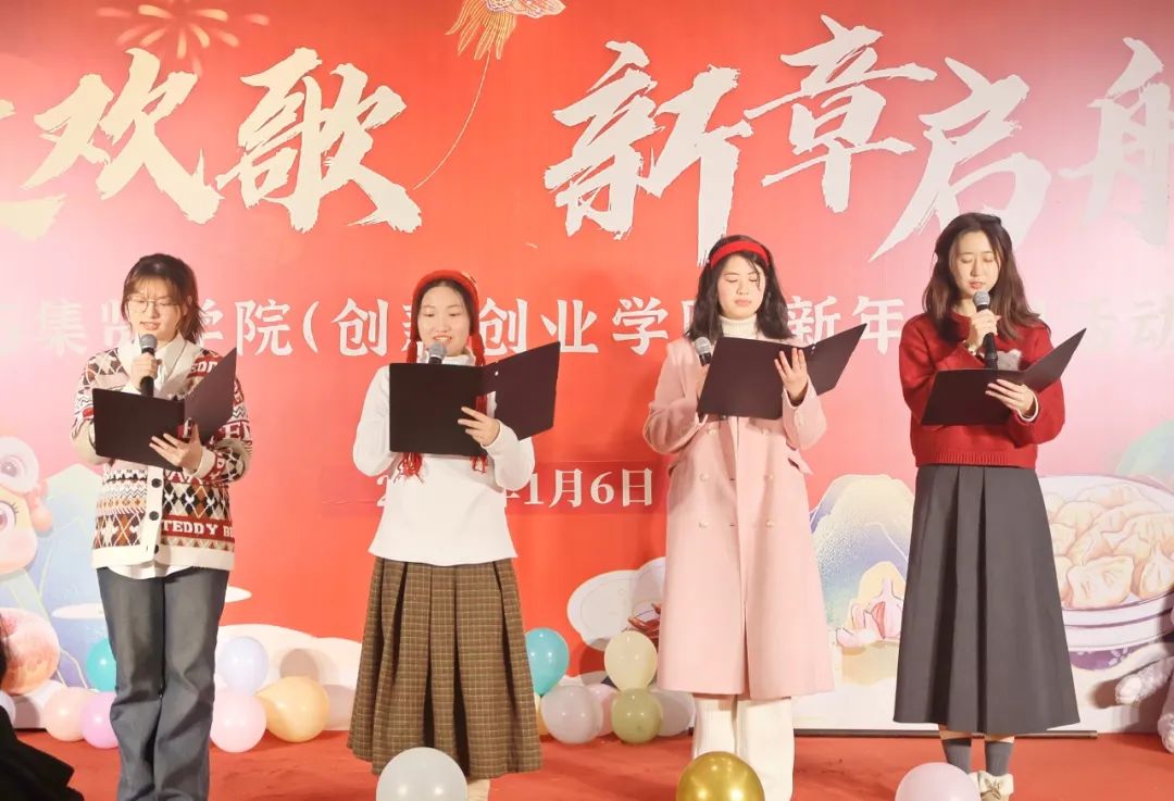 诗朗诵《你好,新年》,吴茜茜、郑炜丹、甘乐超、曹飞扬四位同学用饱含深情的声音,将对新年的美好憧憬与期待娓娓道来,仿佛带着大家穿越时光,踏入充满希望的新一年。抑扬顿挫间,“新年”的意象鲜活呈现,朗诵结束观众们热烈的掌声,更是为这场与新年对话的诗意之旅画上圆满句号。