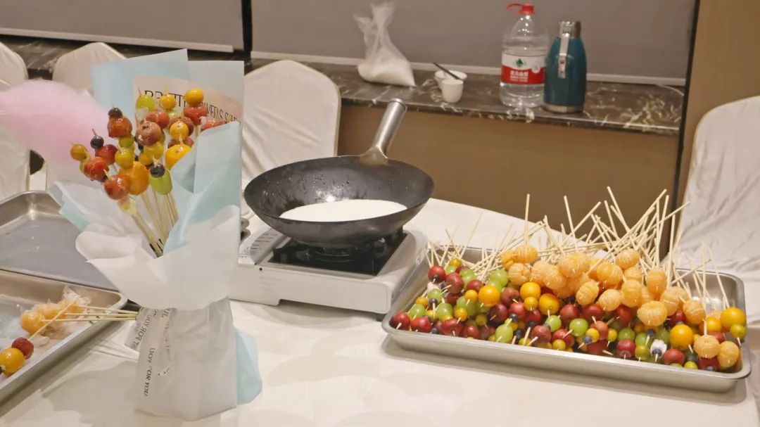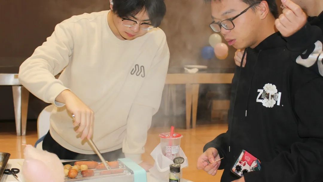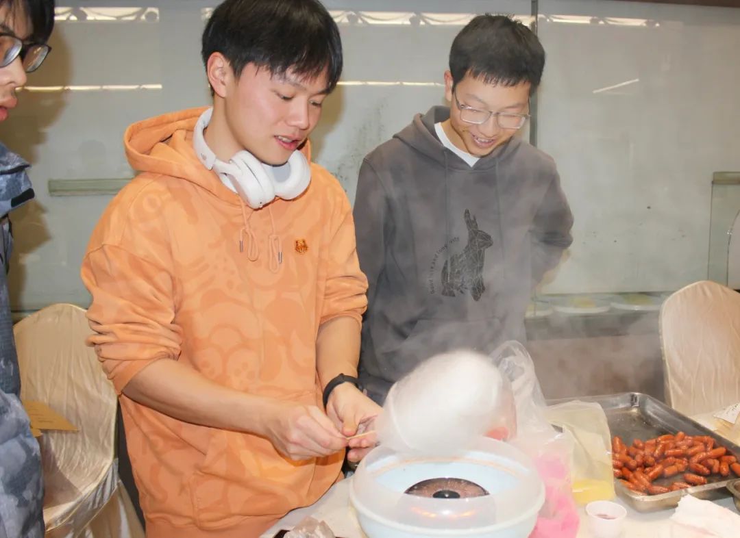 活动以游园环节拉开帷幕,现场设有“新春愿景绘”、“瑞光迷影猜”、“灵圈套福韵悠长”、“三二一福运欢乐亭”四个任务点,同学们在四个摊位集章打卡后,可以换取精美的小礼物。同时,现场还准备了许多小吃,晶莹剔透的糖葫芦、圆滚滚的烤肠、各色软糯的棉花糖······每一个小吃都是由师生共同制作的。