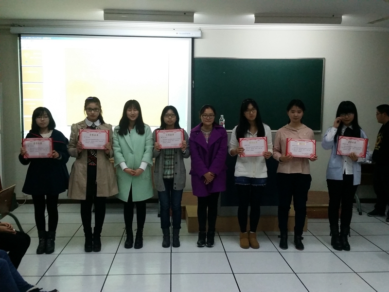 宴会将近尾声时,主席团在团学所有成员中抽取了三等奖15名,二等奖8名,一等奖2名,并颁发奖品,奖励此次大会的幸运儿,陶欣欣和陆艳桦抱得大奖而归。最后,通过几个环节的得分累计,团办、外联和文艺部成为今晚的赢家,获得了奖品。