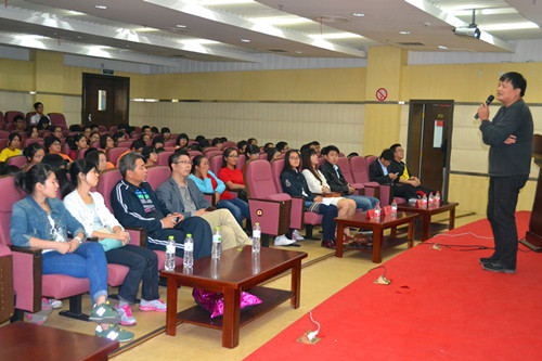 徐光辉院长在五舟广场简短的开场演讲中向同学们阐述了梦想的价值,人生的意义。致辞完毕后,同学们在William威廉英国老师们的带领下从五舟广场向图书馆进发,形成了东湖边上一道靓丽的风景线。而后大家在图书馆门口留下了大学里第一张合影。之后全体同学参加了学院首届主题为“我的大学时代”的LC(Lead to Change)学习生态圈短演讲,斯震老师、曹长省老师、周劭伊同学、王佳慧同学各自为大家讲述了他们的大学时代与感悟,虽然每人的侧重点不一样,但都是发人深省的。之后我院金丹妮同学在互动环节上自告奋勇上台讲述了她的改变,激励大家努力拼搏。