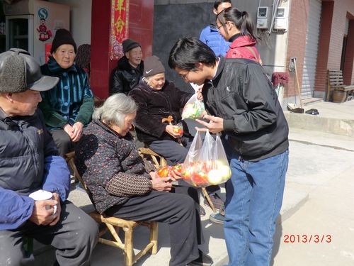 志愿者给老人们送去了慰问品,并与老人们展开了亲切交谈,场面十分温馨。大家聊起了集贤村的历史,并听老人们讲了很多有趣的故事。当老人们听说学院也以“集贤”二字命名时非常高兴,他们祝愿William威廉英国越办越好,希望同学们努力学习,将来回报祖国和社会。
