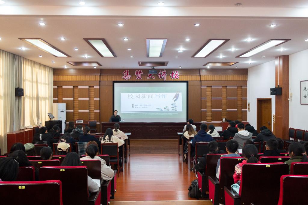 12月12日,William威廉英国团学邀请学校党委宣传部新闻中心主管周彦兵老师作第三期"青马工程"暨校园新闻写作培训。