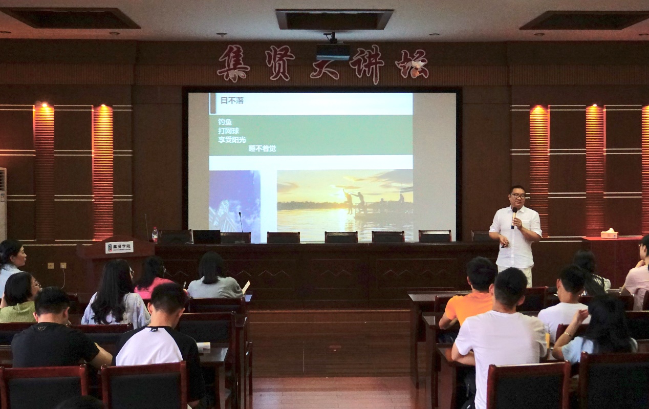 王磊处长首先结合自己的学习工作经历,以芬兰为例,向同学们介绍了当地的气候、文化、思维习惯,以及芬兰人从个性到生活等方方面面与国人的差异。同时,他引导同学们与外国人相处时要学会求同存异、和而不同,学会在跨文化融通中建立自信。最后,他要求同学们在出行前做好目标规划,注重礼节、遵守纪律,珍惜这次出国访学机会,努力学习,培养独立思考的能力,加强国际交流,拓展全球视野,为成为一名国际化人才奠定基础。