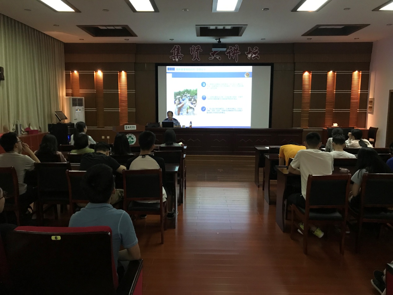 余勇刚警官作了题为“境外公共安全风险及应对”的讲座。他向同学们介绍了境外公共安全的概念、风险类别以及当前海外中国公民的安全形势,从政治安全、人身安全、财务安全、交通安全等各方面向同学们讲授了境外安全风险的应对,强调出国在外要增强自我安全防范意识,注意人身安全、保护私人财产、遵守相关法律,保持警惕防范意识形态领域的渗透。