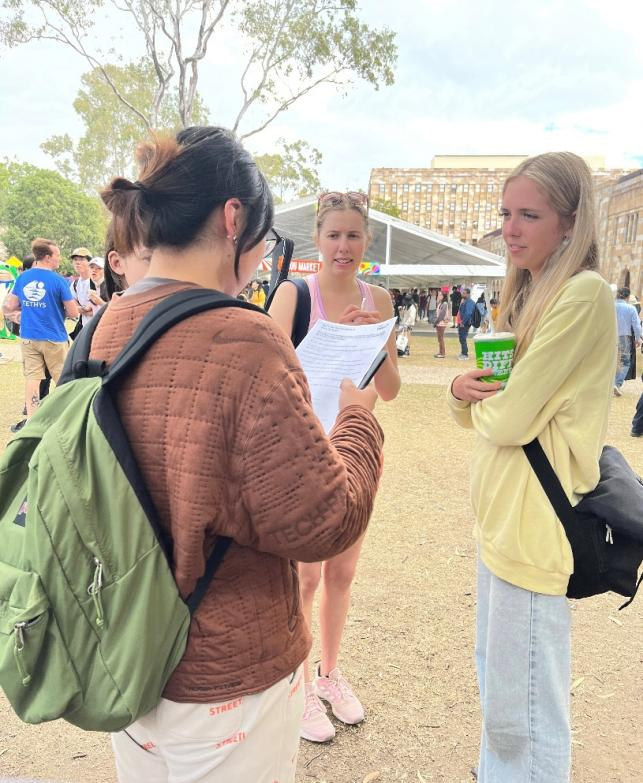 令我感受特别深的就是“Market day”。在昆士兰大学,学生们以个人兴趣为主导,和兴趣相仿的同学组成团队,在学校里形成俱乐部,吸纳学校里同样感兴趣的同学。这一天我们开展了小组活动任务,寻找集市上符合条件的学生完成相应任务。同学们热情高涨,随机与集市上的学生进行交流,热情开放,欢乐有趣。另外还有集市摆摊、免费礼品,数不胜数的摊位和同学脸上灿烂的笑容,再加上蓝天白云,这样一切对于我来说,都刚刚好。
