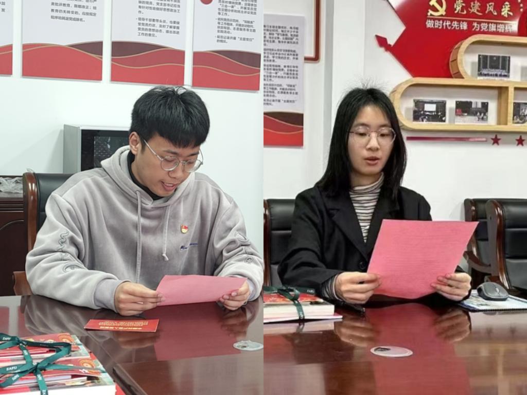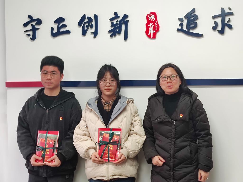 徐丽君代表学院党总支与新党员们进行集体谈话,对大家提出了三点希望:一是要传承红色基因,守好红色根脉;二是要找准发展之机,走好成长之路;三是要锤炼品德修为,练就过硬本领。要以良好的精神状态,充足的干劲,积极为推动学校和学院事业发展贡献青春力量。她还为新发展党员赠送“党员六宝”:一枚党徽、一本党章、一本党费证、一本学习记录本、一张党员政治生日卡和一本《习近平与大学生朋友们》,鼓励新党员们在组织中认真学习,积极融入组织大家庭。
