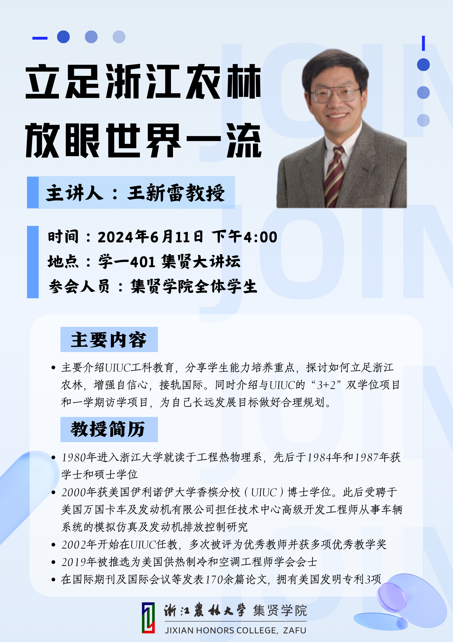 上一条: “名师大讲堂”预告——应义斌教授:行远自迩 笃行不怠 追求有灵魂的卓越 下一条:讲座预告:“启智”·集贤大讲坛——管理经济学:企业变革与创新管理(Entrepreneurship: Evaluating Market Opportunities)