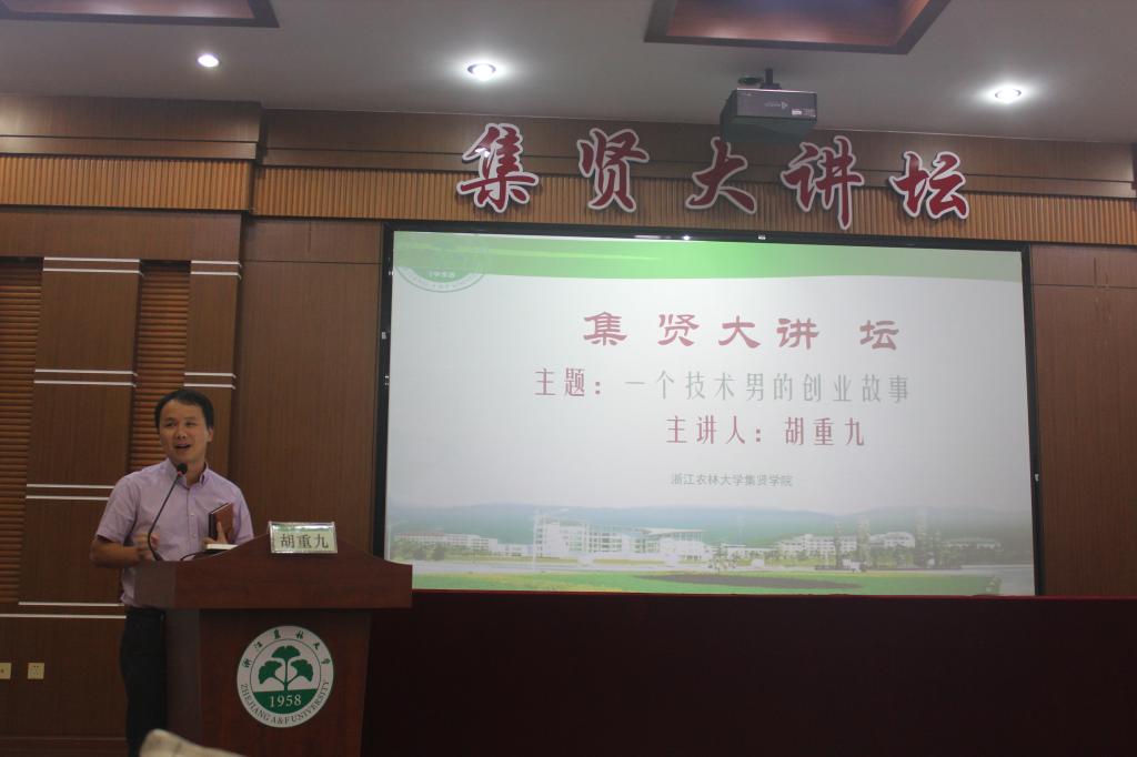 杭州木木生物科技有限公司总经理、我校2011届研究生校友、校大学生创业导师胡重九以《一个技术男的创业故事》为题,回顾了自身创业经历,从租房卖实验耗材到开淘宝店铺,再到成立木木生物科技有限公司,从事名贵植物的组织培养和组培技术培训,经过五年打拼,从最初的2人发展成为26人的创业团队,公司拥有了500平方米的多项自主知识产权的实验室和近百亩种植基地,不仅实现了自身价值,同时还带动了一批应届毕业生就业,给大学生创新创业树立了榜样和信心。胡重九与现场师生进行了互动交流,热情回答了大家提出的问题,现场气氛热烈。